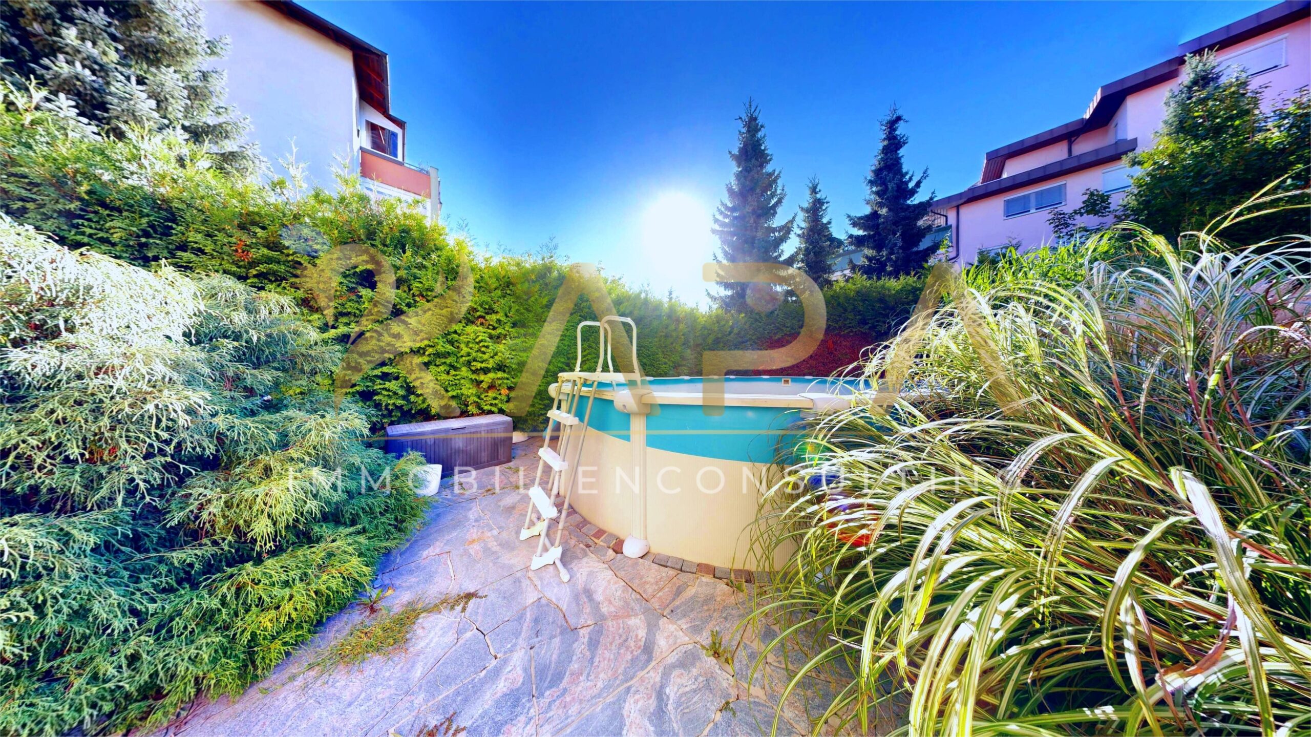 Der große Garten lässt nicht nur Kinderherzen höherschlagen – auch Hobbygärtner und Genießer kommen hier voll auf ihre Kosten. Der im Kaufpreis enthaltene Aufstellpool sorgt für Abkühlung an heißen Sommertagen, während der einladende Gartenbereich wie geschaffen ist für gesellige Feste und entspannte Stunden im Freien.