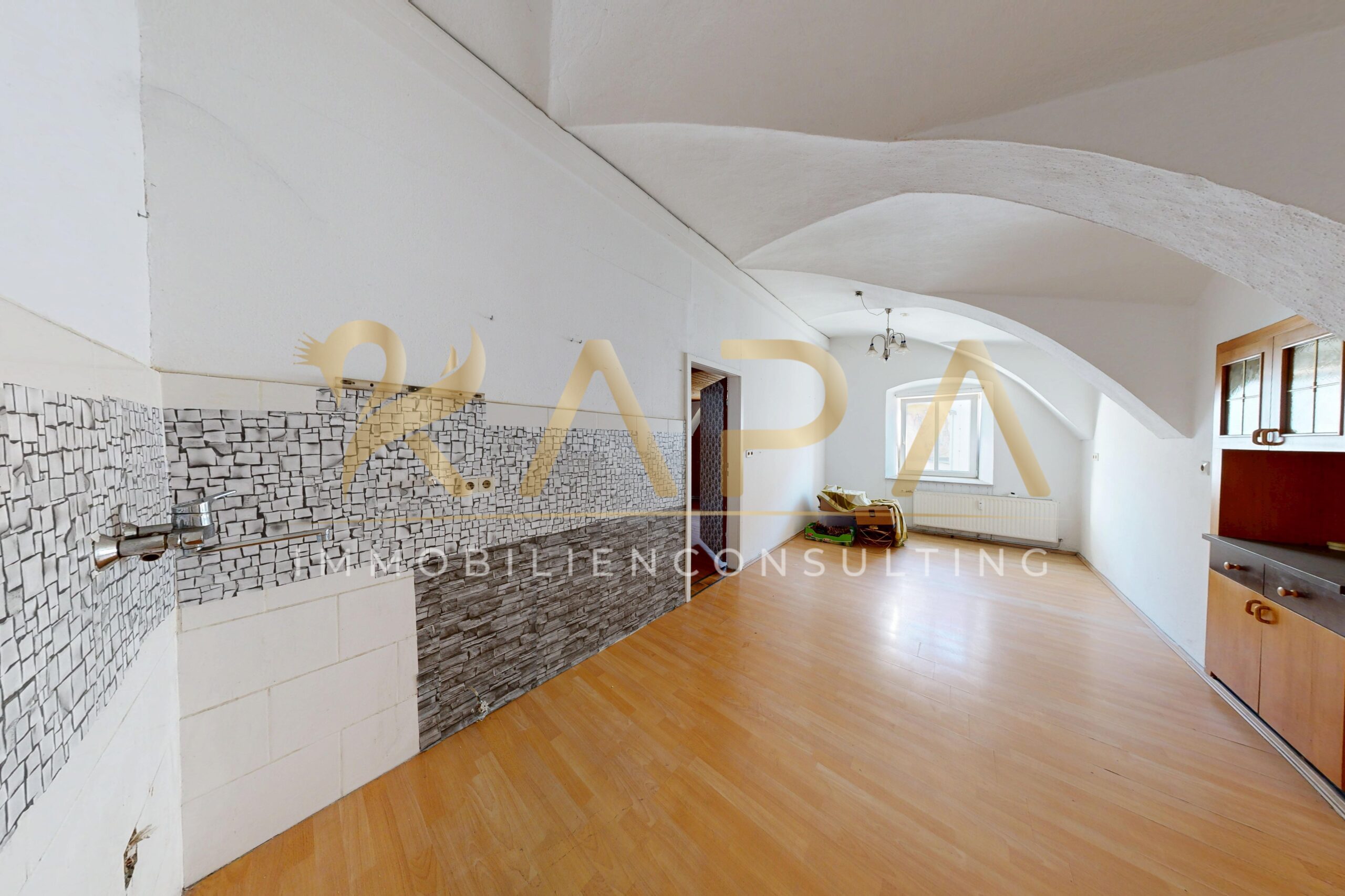 Im Obergeschoss des Objektes befinden sich (aktuell) vier getrennte und parifizierte Wohneinheiten (nicht vermietet- alle sanierungsbedürftig)