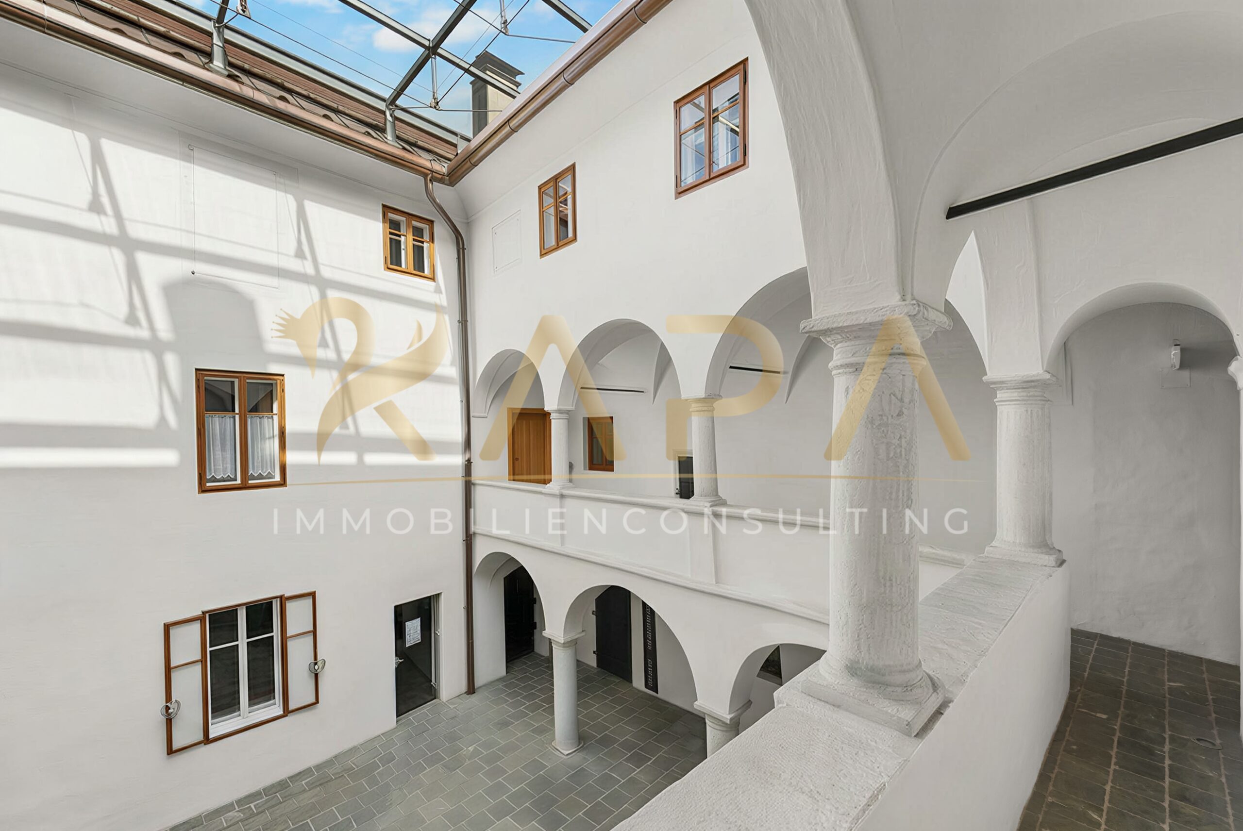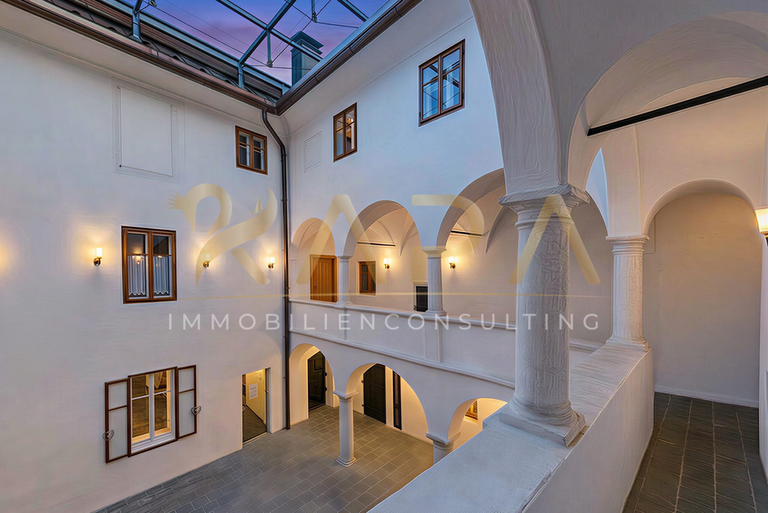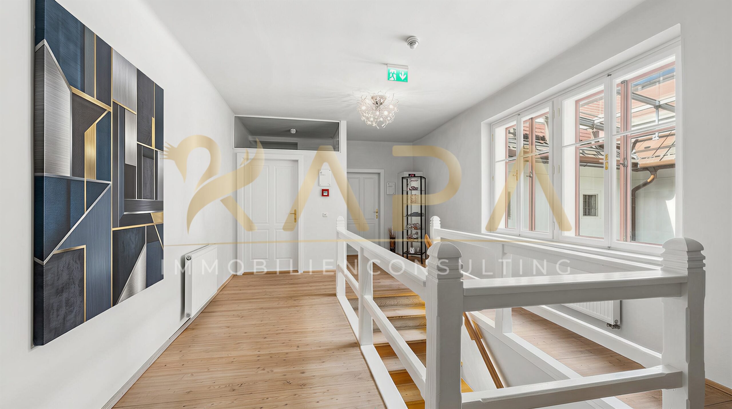 Auf einer Grundstücksfläche von rund 871 m² entfaltet sich ein Ensemble, das in dieser Form nur äußerst selten am Markt zu finden ist. Die Liegenschaft vereint auf eindrucksvolle Weise historische Substanz mit einem durchdachten, zeitgemäßen Nutzungskonzept.